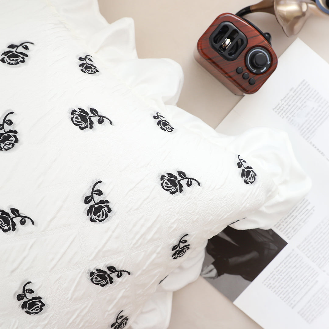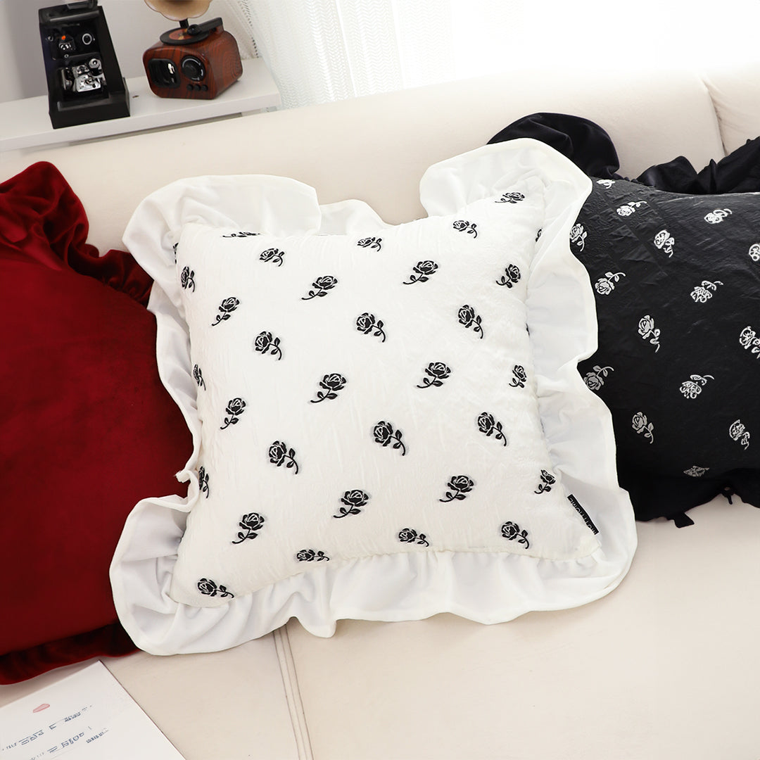 SOGA 2X 45cm Throw Pillow White Ruffled Square Decorative Cushion for Rose Lovers Cozy Home Decor