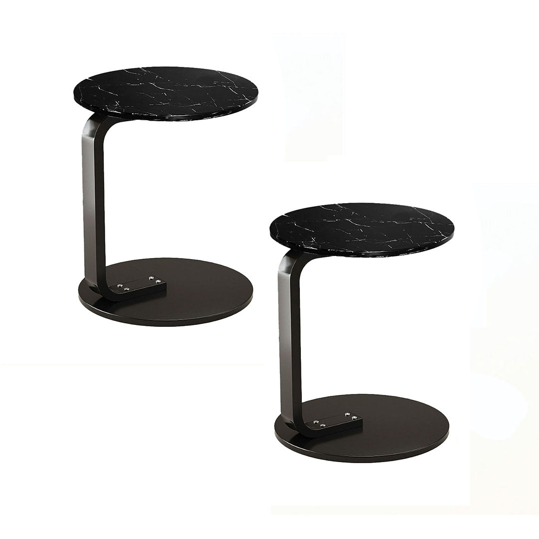 SOGA 2X 50cm Black Marble Mini Side Table Movable Lightweight w/ Black Frame