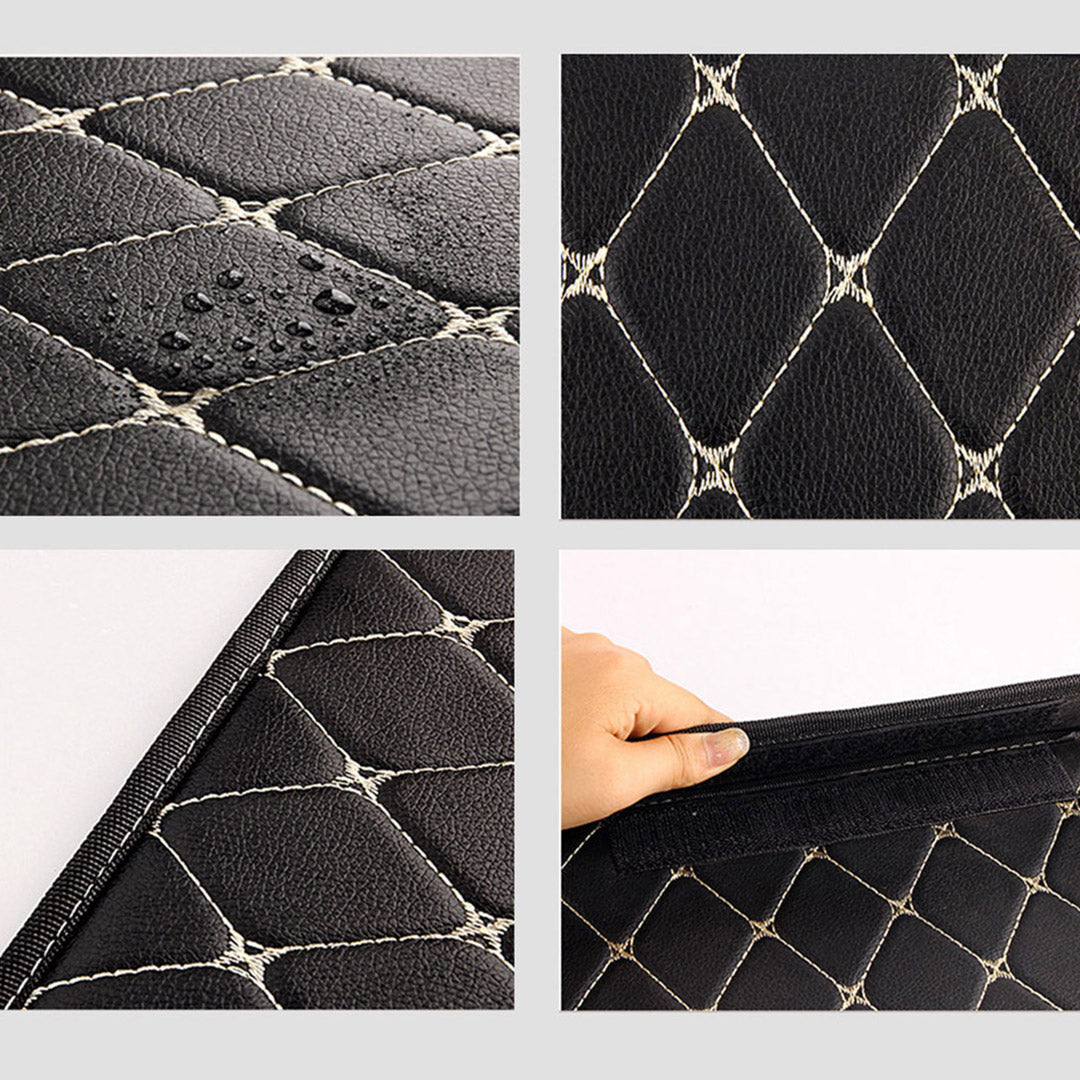 SOGA 2X Leather Car Boot Collapsible Foldable Trunk Cargo Organizer Portable Storage Box Black/Gold Stitch Medium
