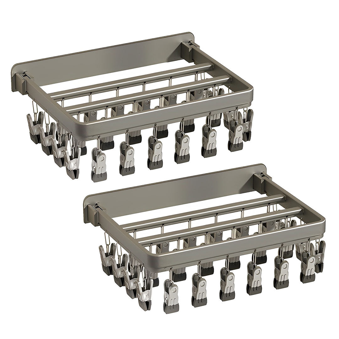 - MULTIPLE NON-SLIP CLIPS: The rack comes equipped with clips, featuring non-slip teeth that securely hold items in place. These clips are designed to be sturdy and durable, preventing items from falling and leaving no marks.