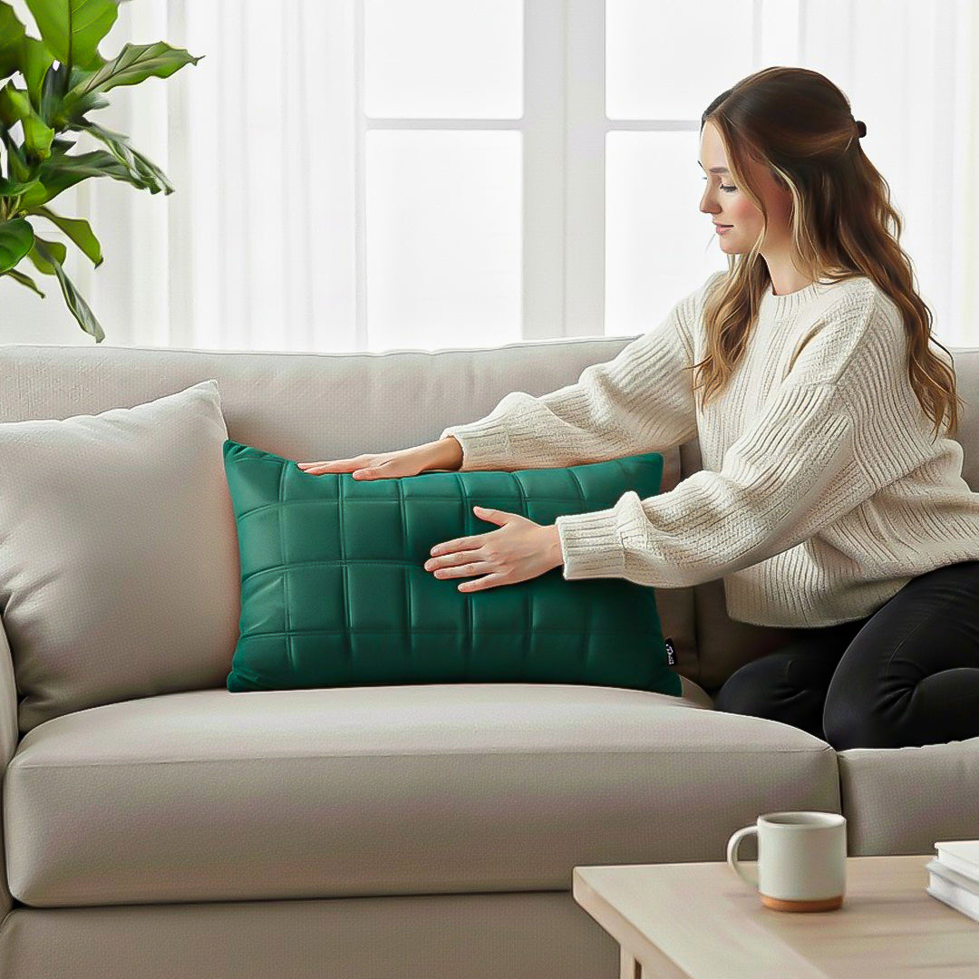 Add a chic accent to your home with the SOGA 30cm Green Velvet Quilted Grid Pattern Decorative Throw Pillow. Featuring a soft velvet texture and a modern quilted grid design, this pillow combines comfort and style in one.