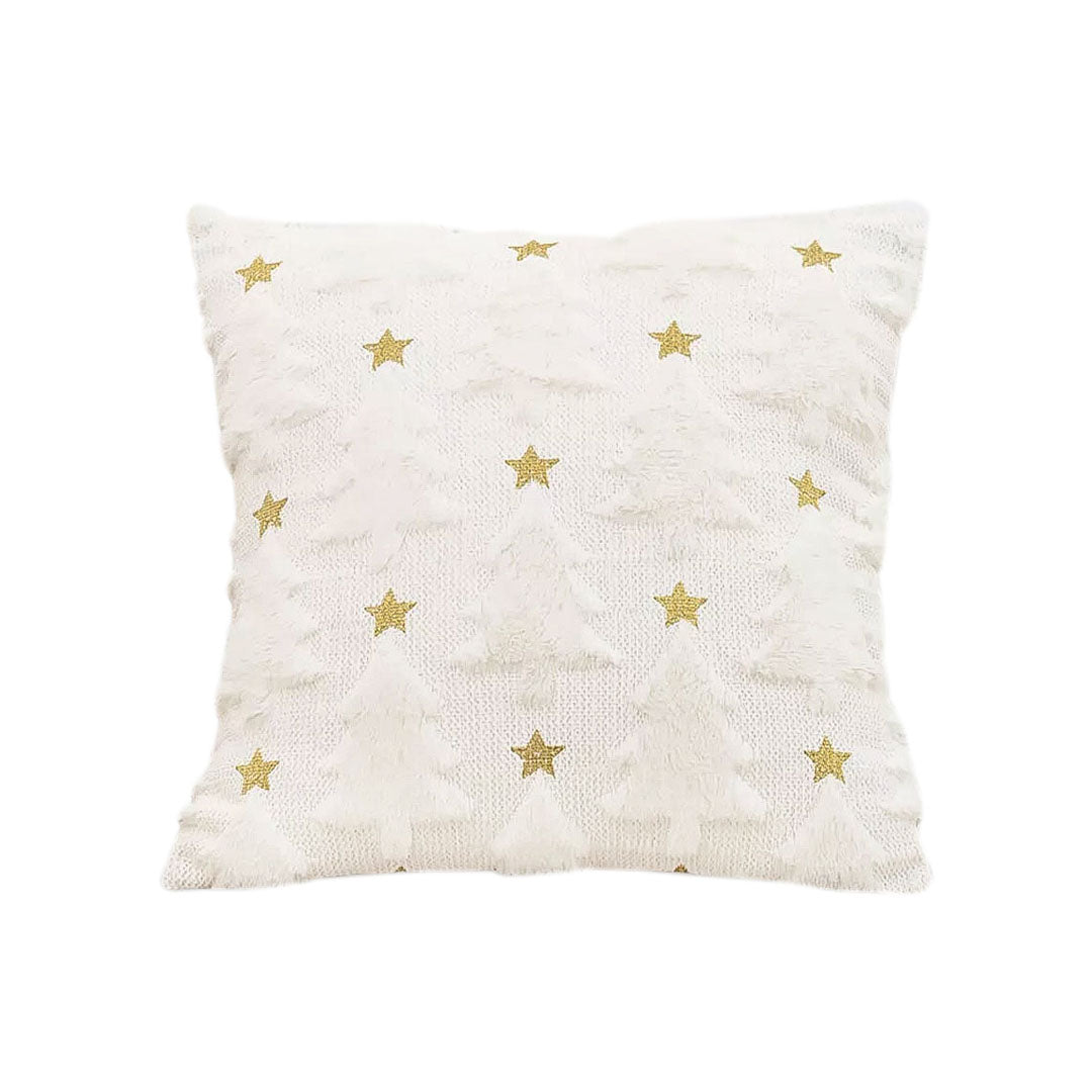 SOGA 45cm Celestial Cream Textured Gold Star Pattern Throw Pillow