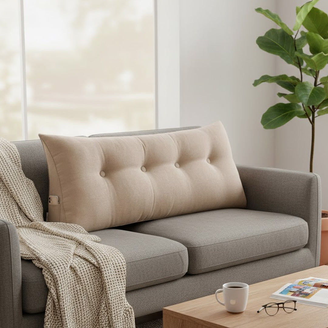 GOOD LUMBAR SUPPORT perfectly fits your back curve making your neck, back and waist always in an optimal sitting position and a completely relaxed state. Provides good and comfortable support when reading a book, playing games and watching TV, etc. on the bed or sofa.