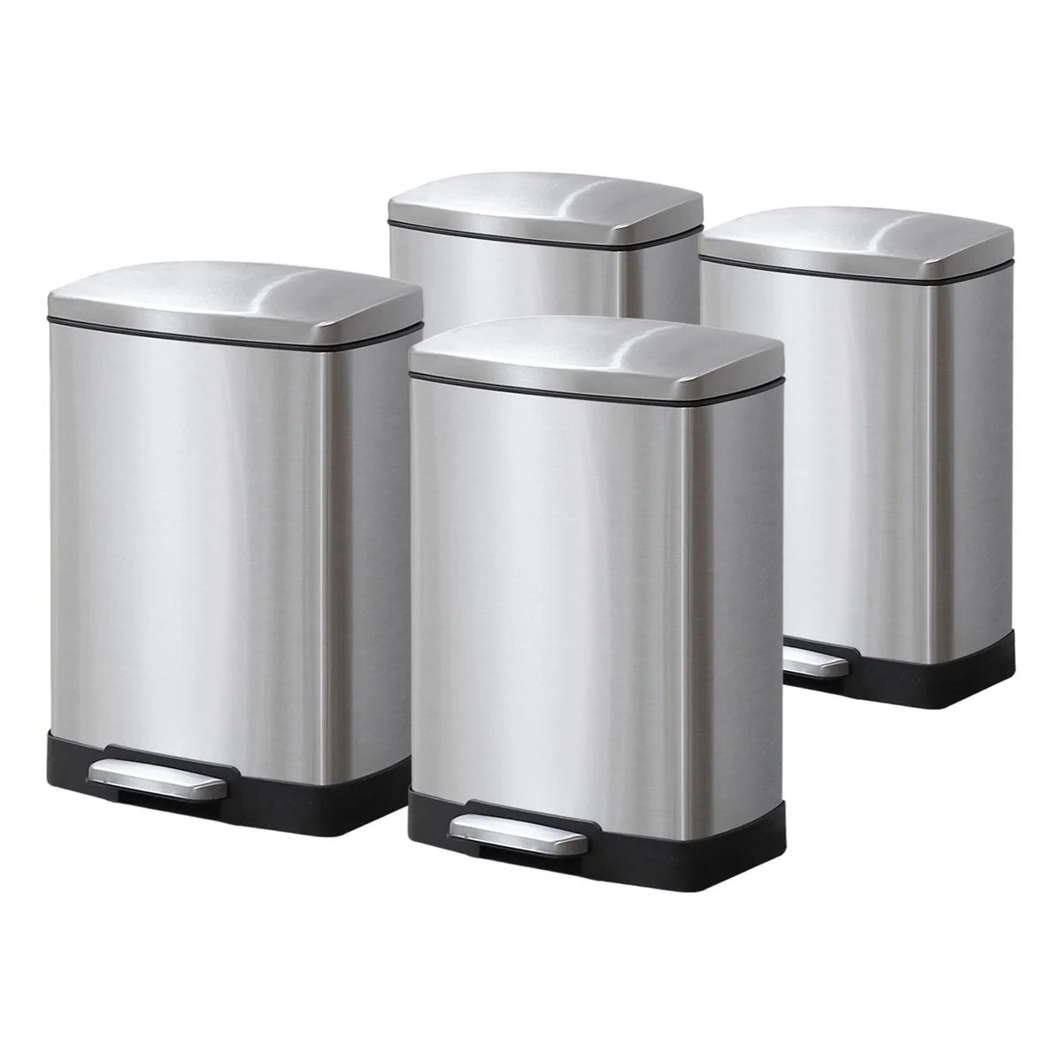 SOGA 4-Pack 12L Silver Stainless Steel Foot Pedal Trash Bin