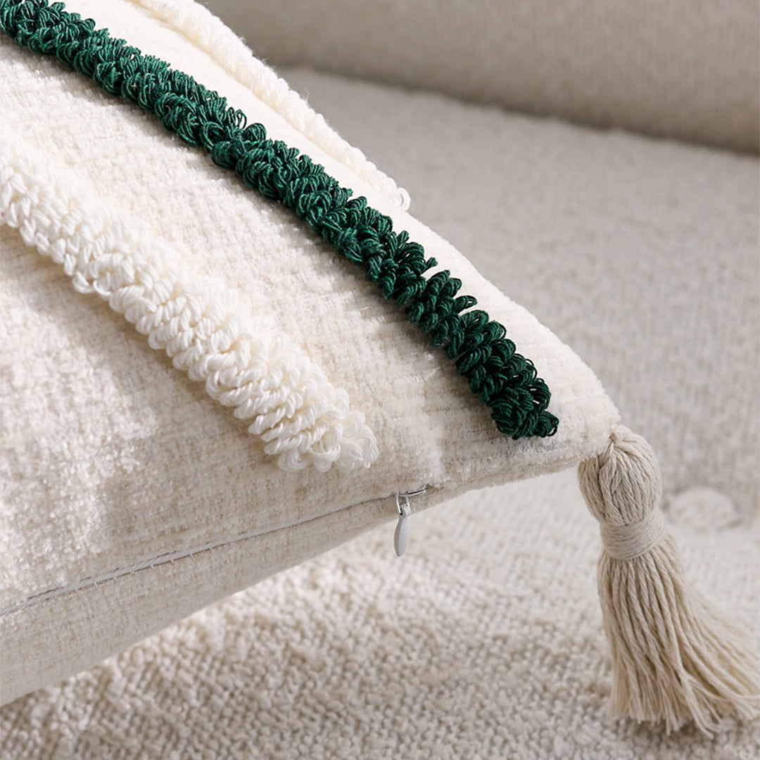 Product Includes: • 1 x SOGA Boho Tufted Cushion 45cm Tassel Beige Green Geometric Chevron Throw Pillow